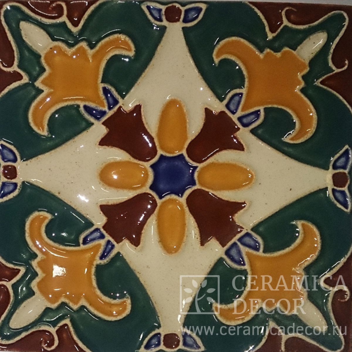 Плитка ручной работы 15х15см. Орнамент (ручная роспись)Артикул: 71051/10697