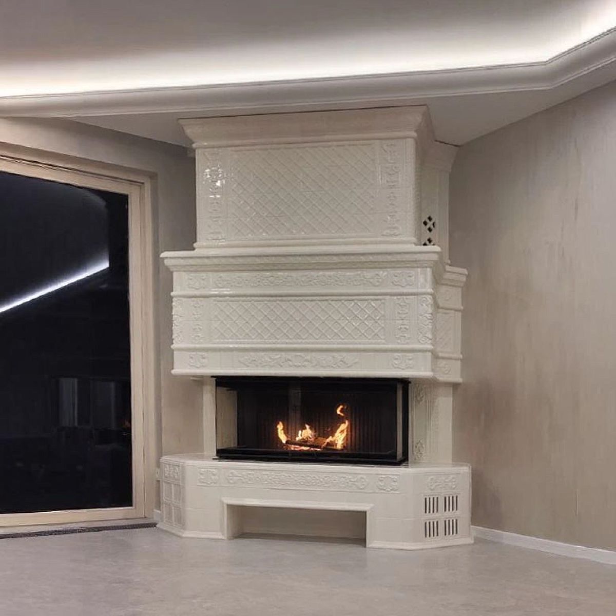 - современный камин в эксклюзивной облицовке.