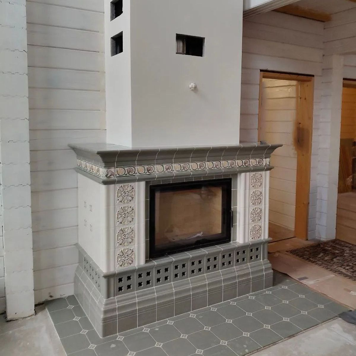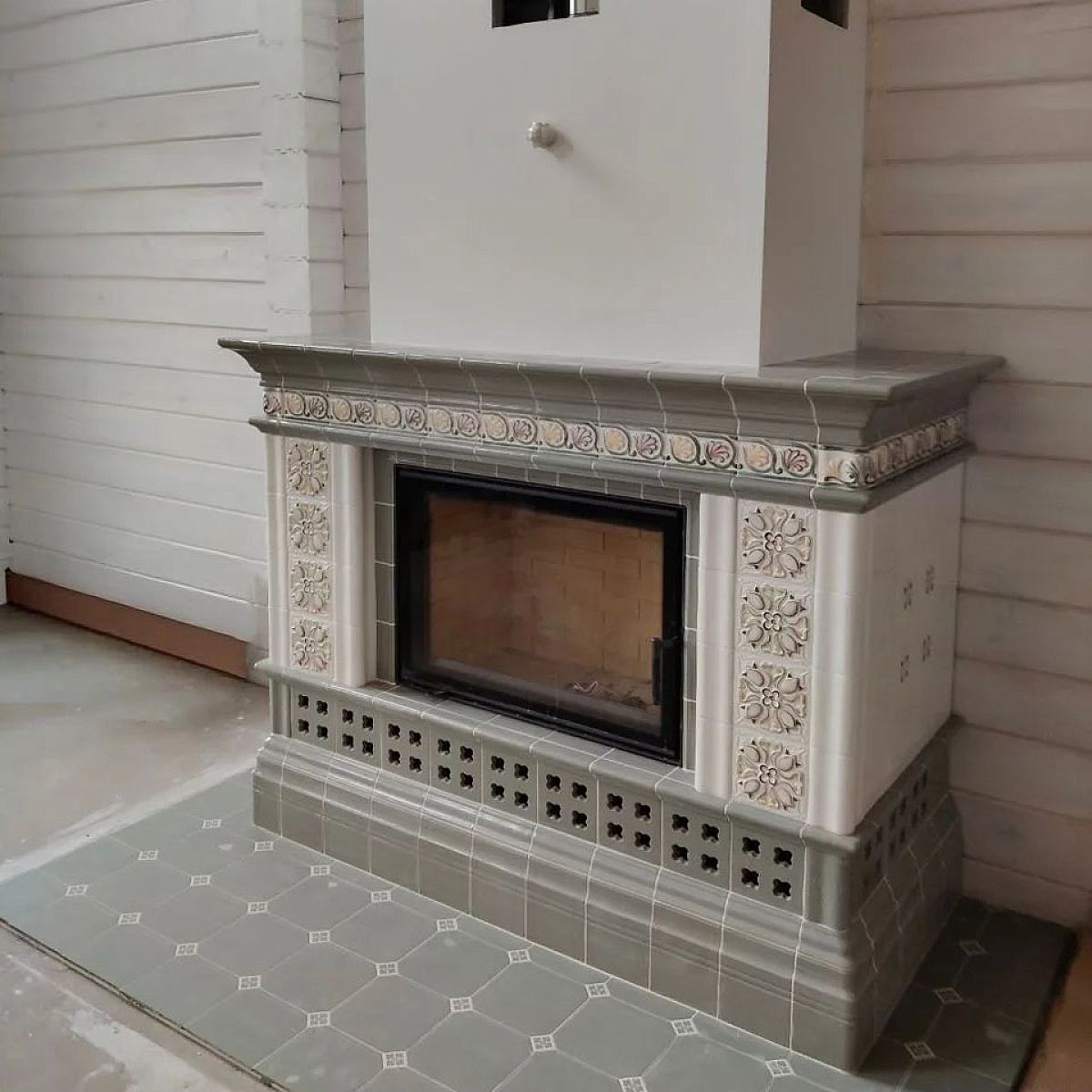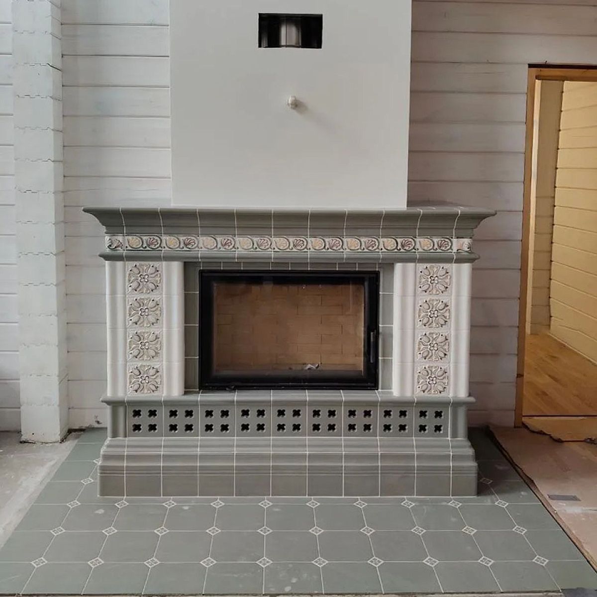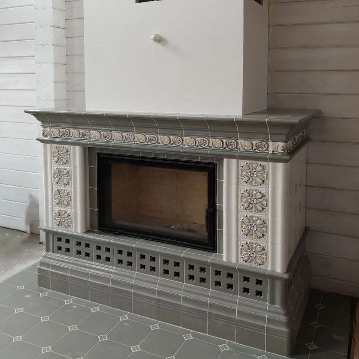 Каминная топка Астов ПС 800 в изразцах коллекции Арт Нуво.