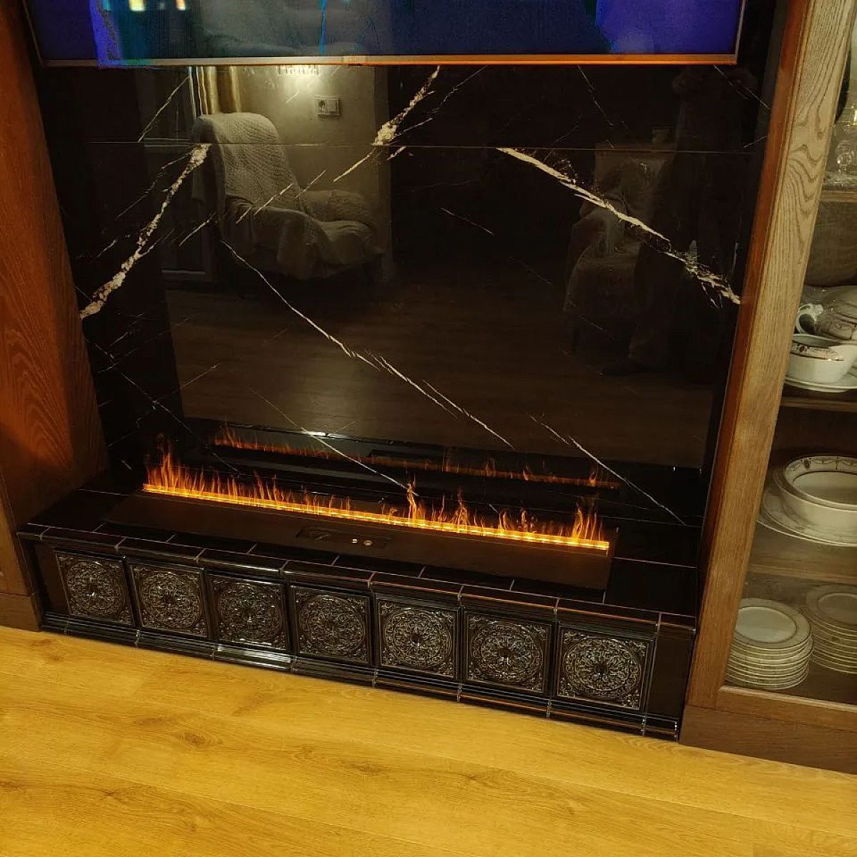 Встраиваемый электрический 3D-камин FireLine1200 в облицовке изразцами коллекции Дорф.