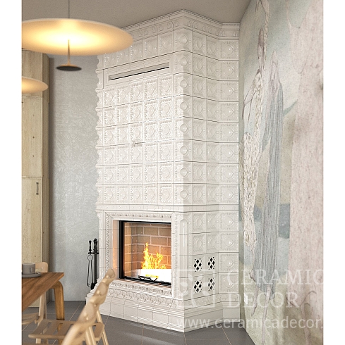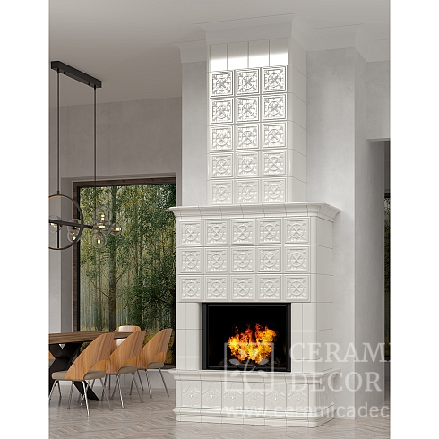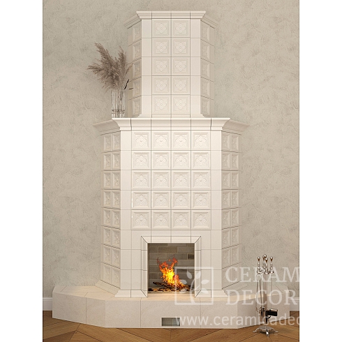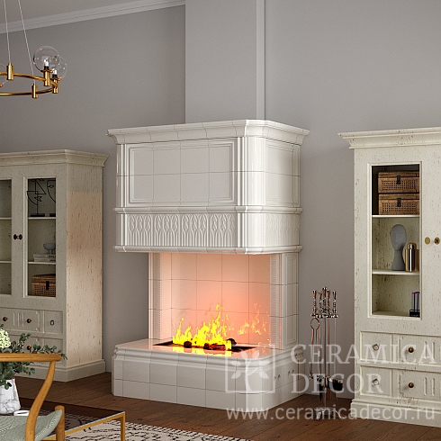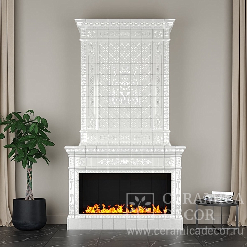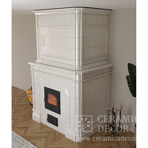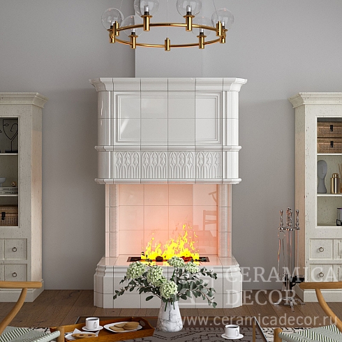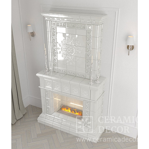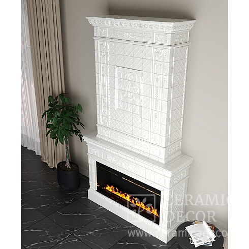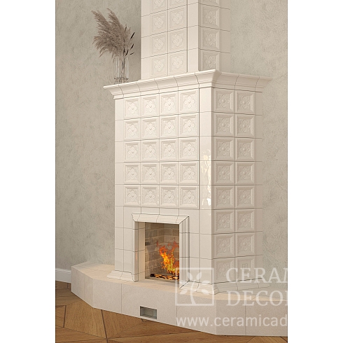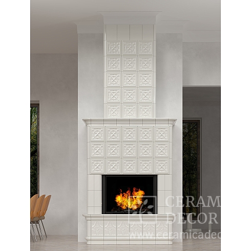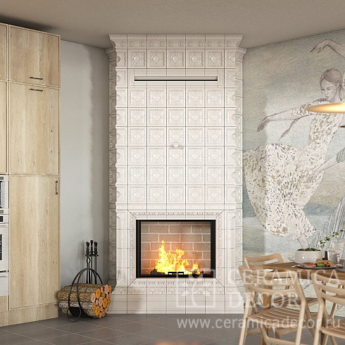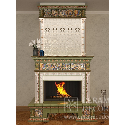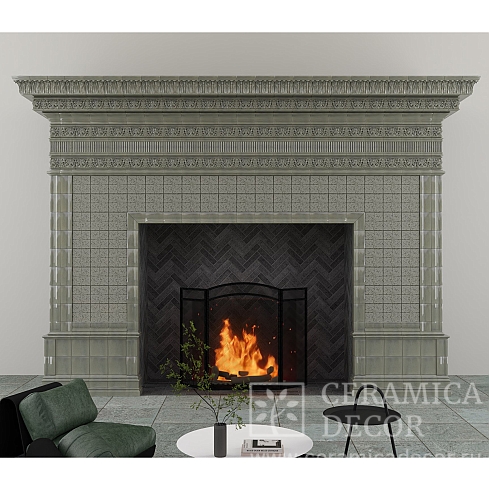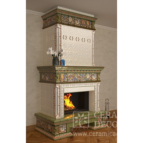 Подготовить проект облицовки камина до полки в майоликовой глазури.