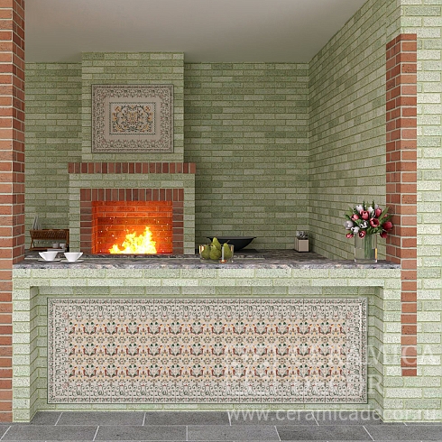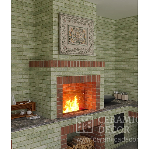 Подготовить проект облицовки печного комплекса в зеленом цвете и коллекции Дорф.