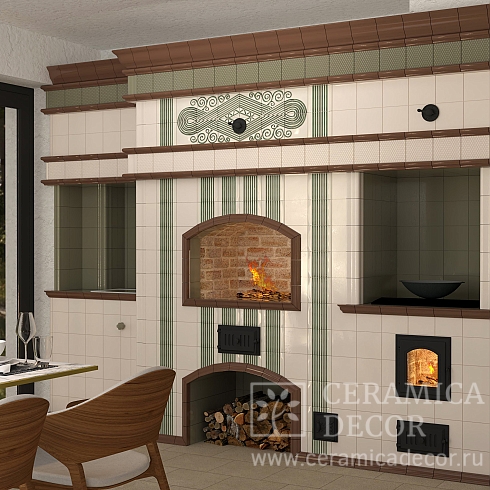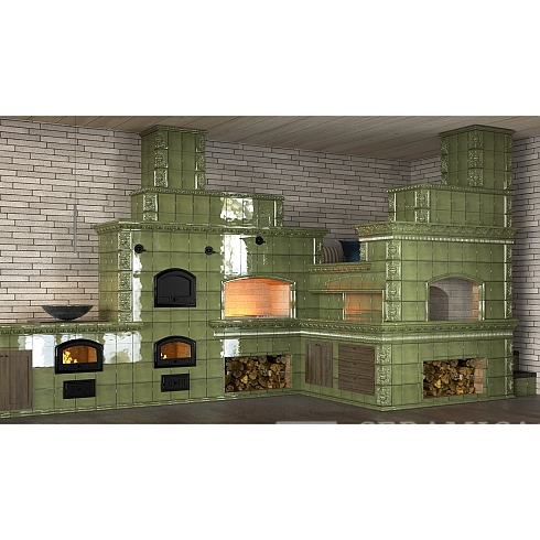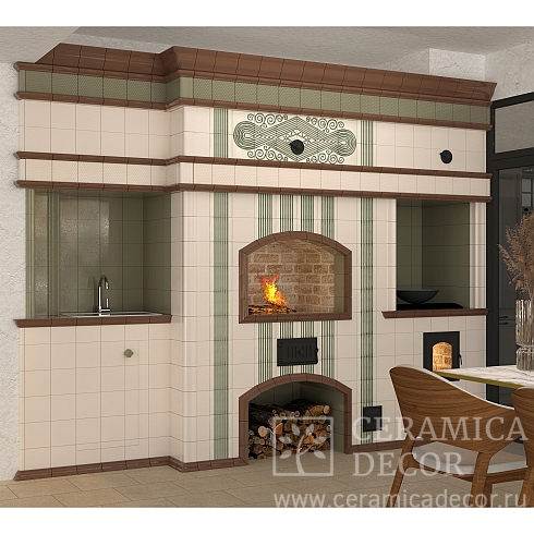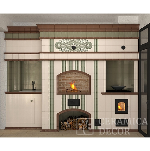 Подготовить проект облицовки печного комплекса в зеленом цвете.