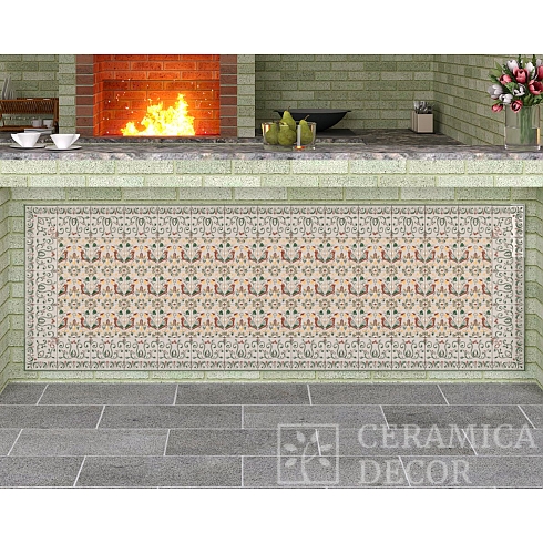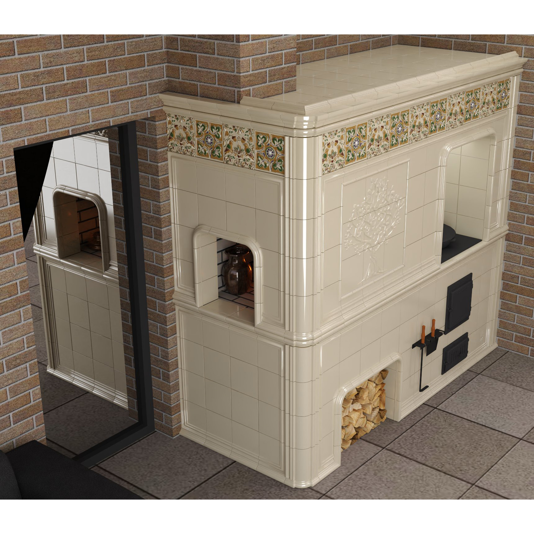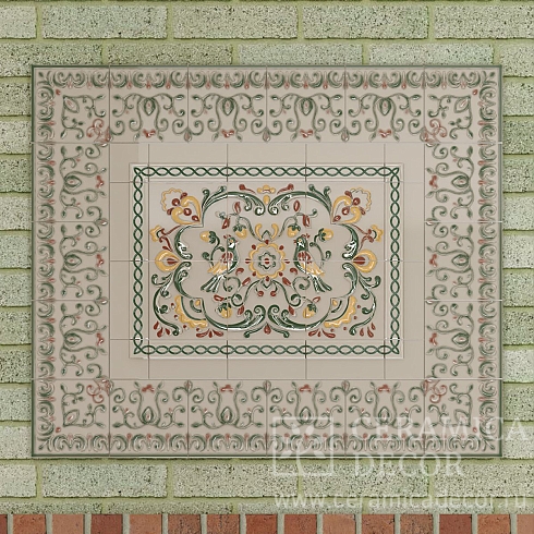 Подготовить проект облицовки печного комплекса с казаном и изразцами из коллекции Птицы.
