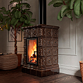 Печь рассчитана на отопление дровами и оснащена системой подачи воздуха, которая помогает поддерживать устойчивое и более чистое горение.